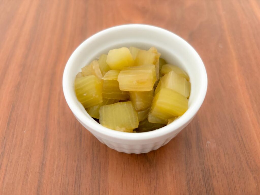 なすを砂糖とレモン果汁で煮た、やさしい甘さのデザートです。「なすでおやつ?」と思うかもしれませんが、食べてみるとなすの食感が果物のようになり、さっぱりとした味わいが楽しめます。