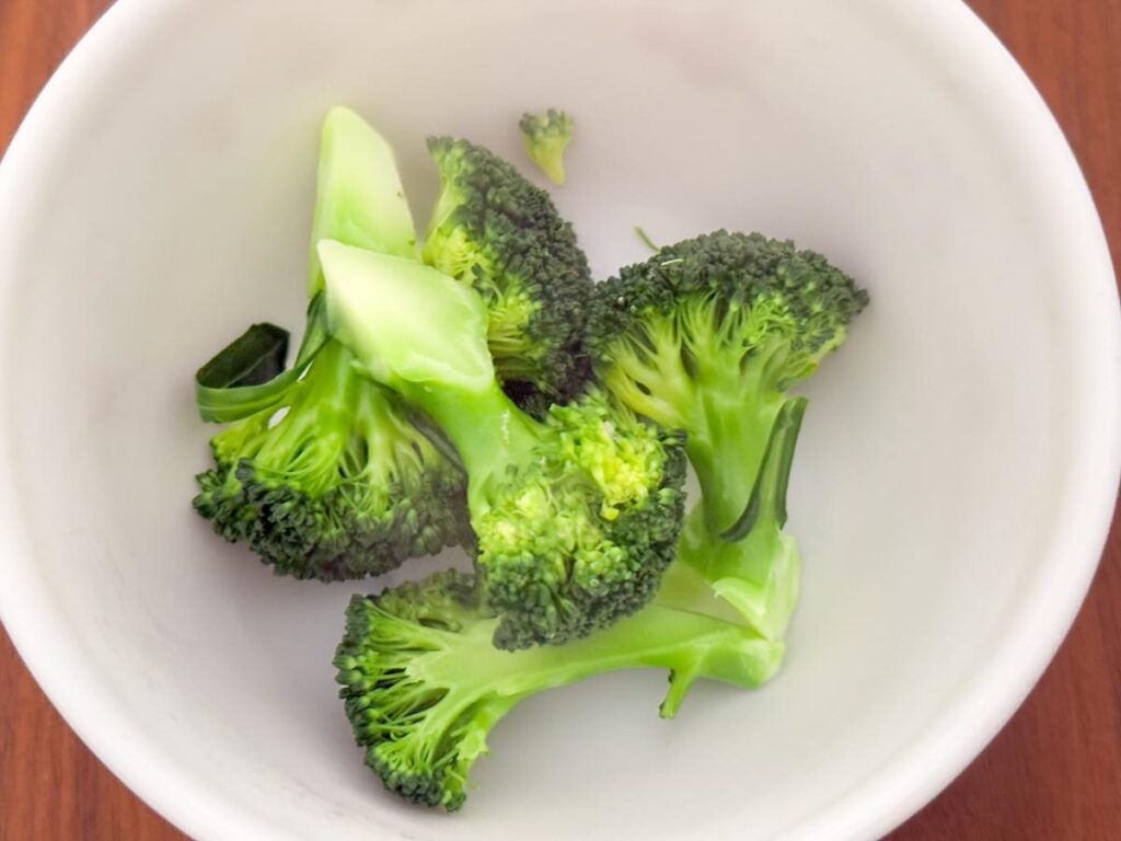 2)鍋にたっぷりの湯を沸かして塩少々を加え、ブロッコリーを約3分茹でます。