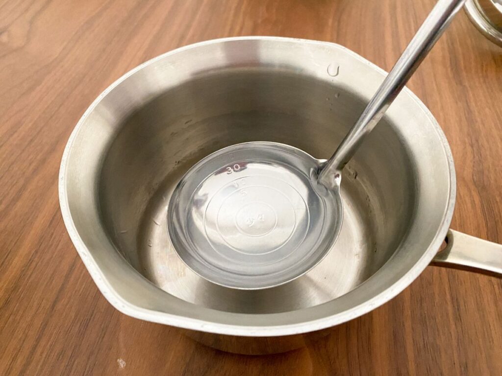 2)鍋に水50ml入れます。