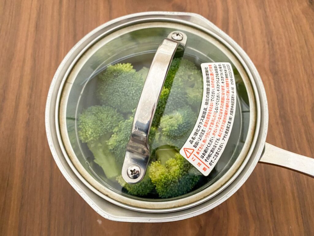 水おたま1杯と中火、それだけでブロッコリーがおいしく仕上がります。