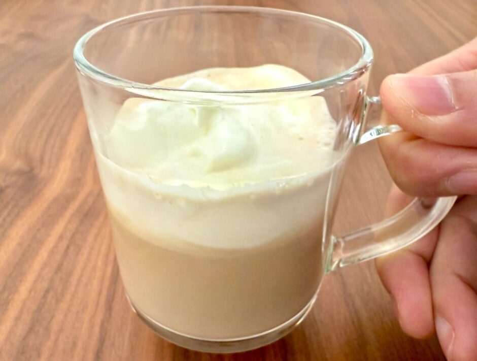 ふわふわの生クリームの甘さと、コーヒーのほろ苦さが口の中で混ざり合います。見た目もカフェのドリンクのようで、気分が上がる一杯です。