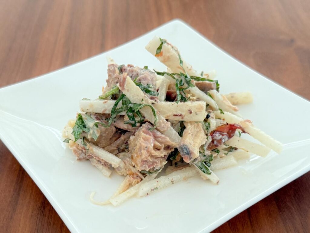 大根のシャキシャキした食感と、サバの濃厚な旨味が絡み合い、箸が止まらない一品になります。お好みでマヨネーズを少し足したり、ポン酢をかけたりしても美味しいですよ。