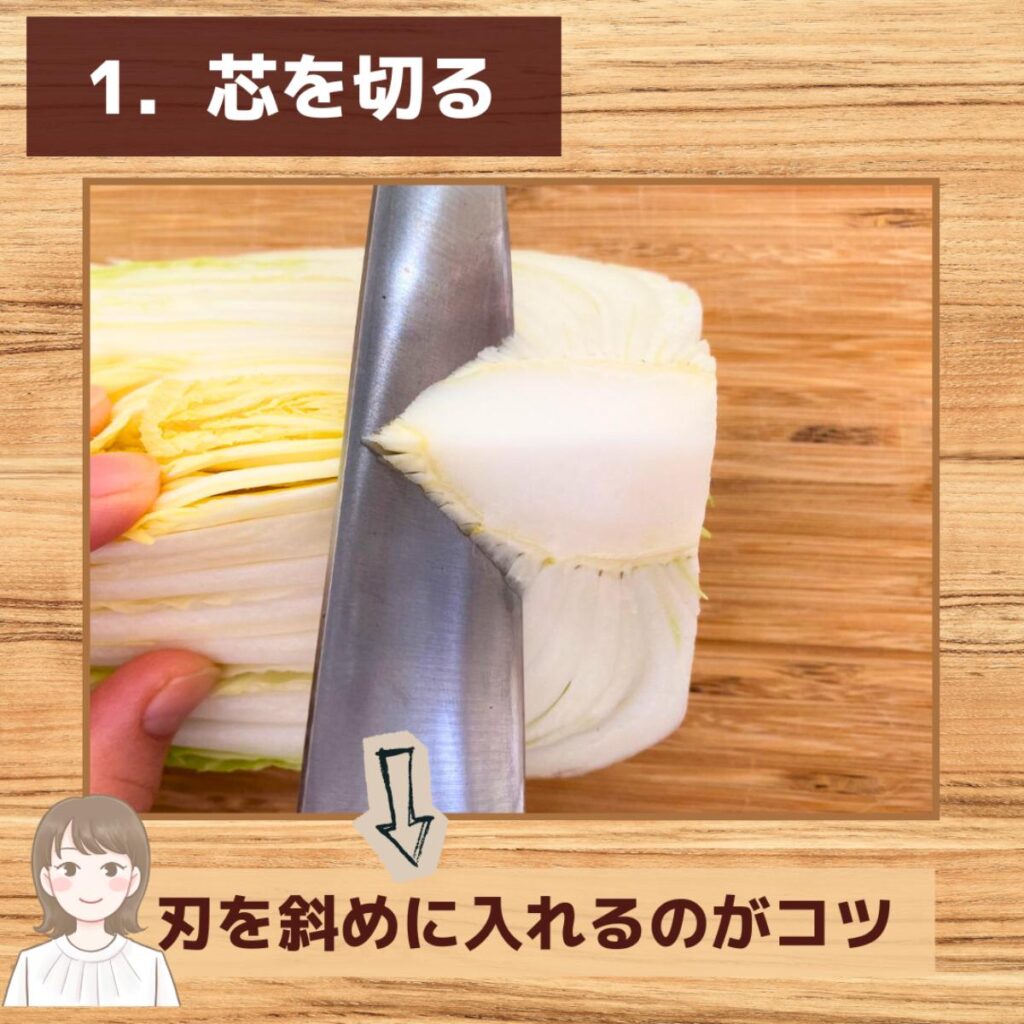 - 白菜の芯を切り落として、キレイに洗います。