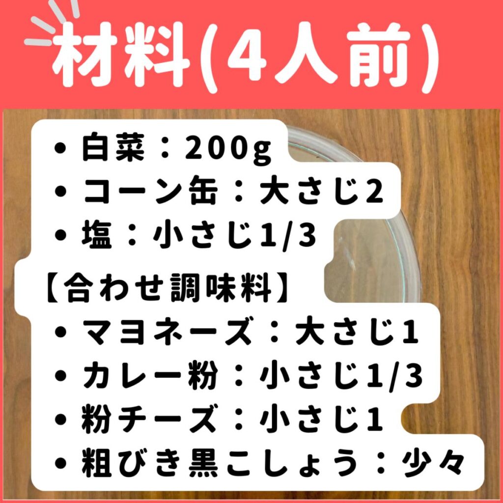 - 白菜:200g(大きな葉で2〜3枚程度)