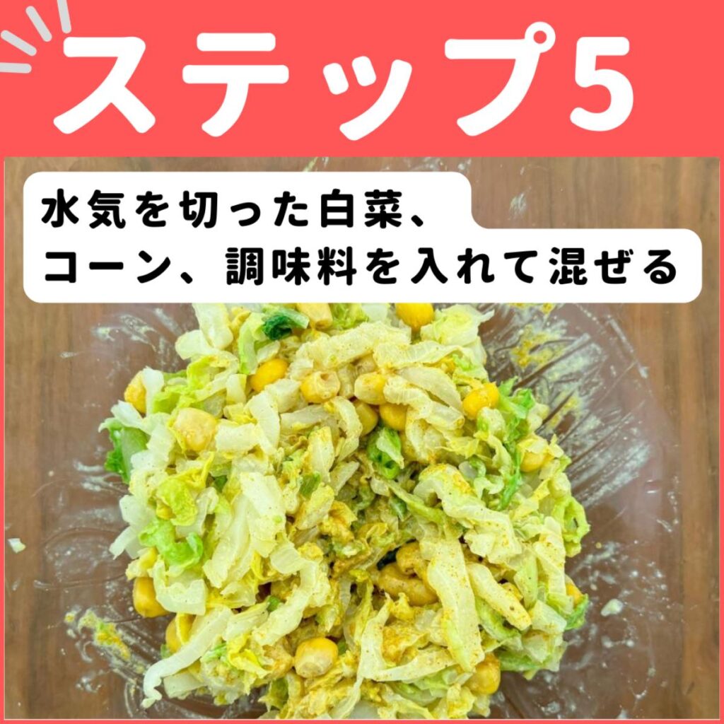 シャキッとした白菜に、コーンのつぶつぶとした甘み、