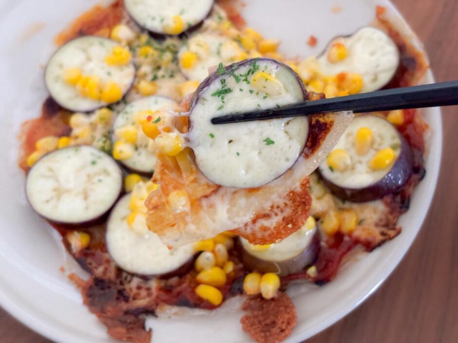 なすとコーンにチーズをたっぷり重ねた、おやつにも晩酌にもうれしい一品をご紹介します。