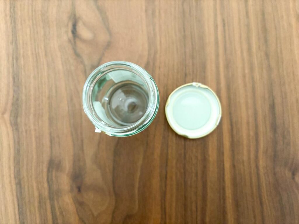 1)はちみつの空き瓶とフタをキレイに洗って、しっかり乾かします