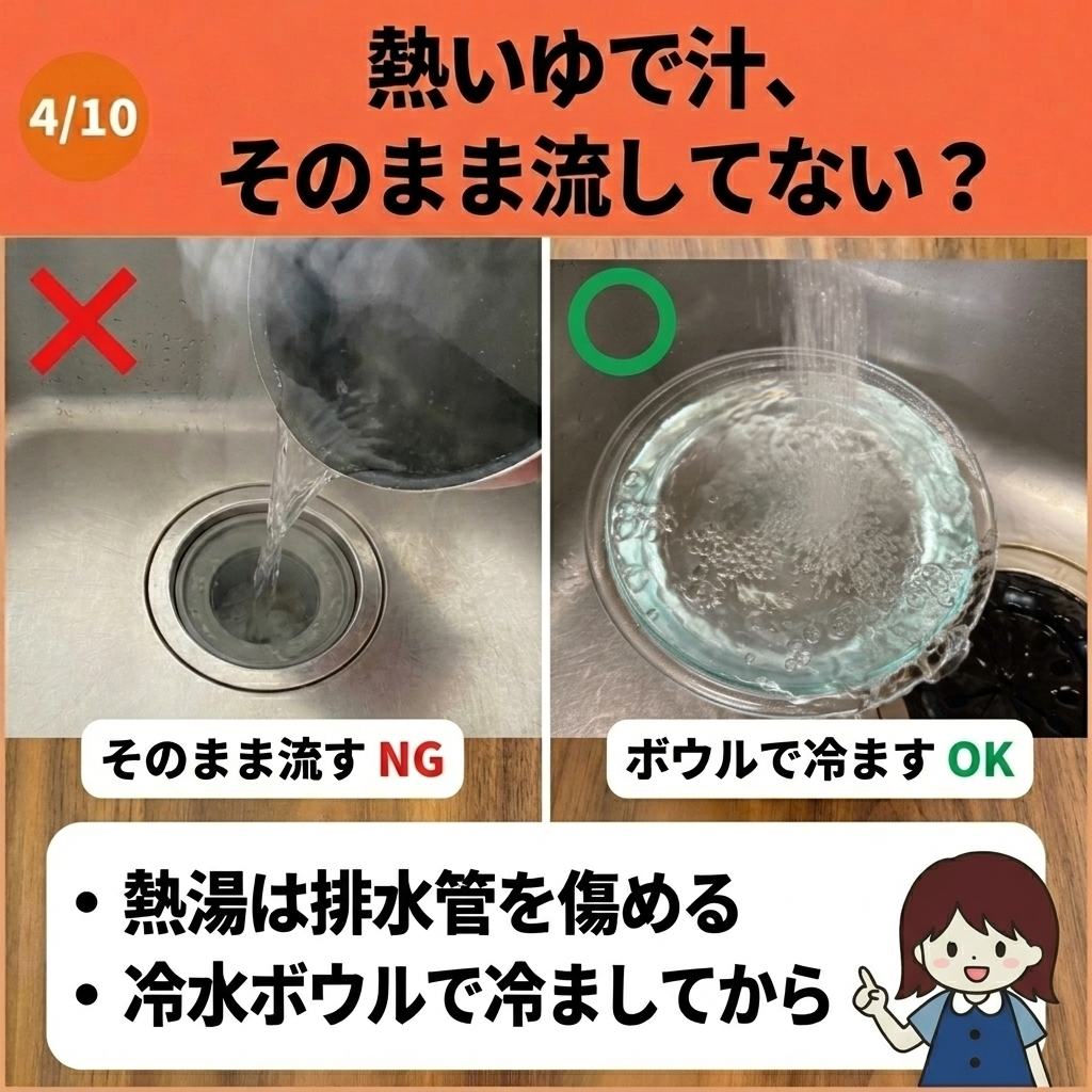 実はこれ、塩化ビニル製の排水管を劣化・変形させる原因になることがあります。