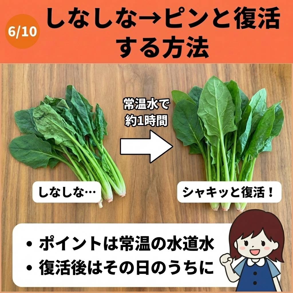 ただし、復活したほうれん草は保存には不向きなので、その日のうちに使い切るようにしてください。