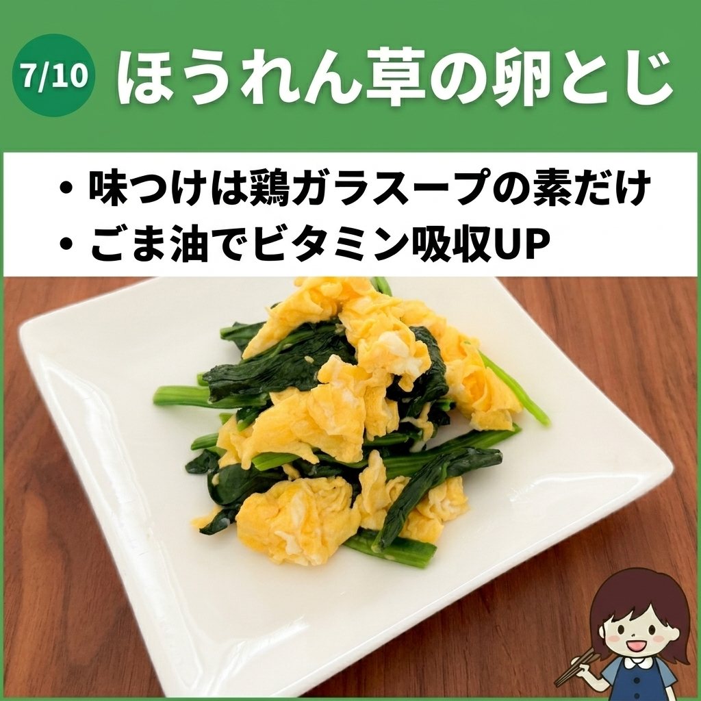 卵のタンパク質も同時に摂れるので、忙しい日の副菜にぴったりではないでしょうか。