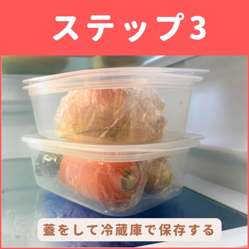 3)しっかりと蓋をして冷蔵庫で保存する
