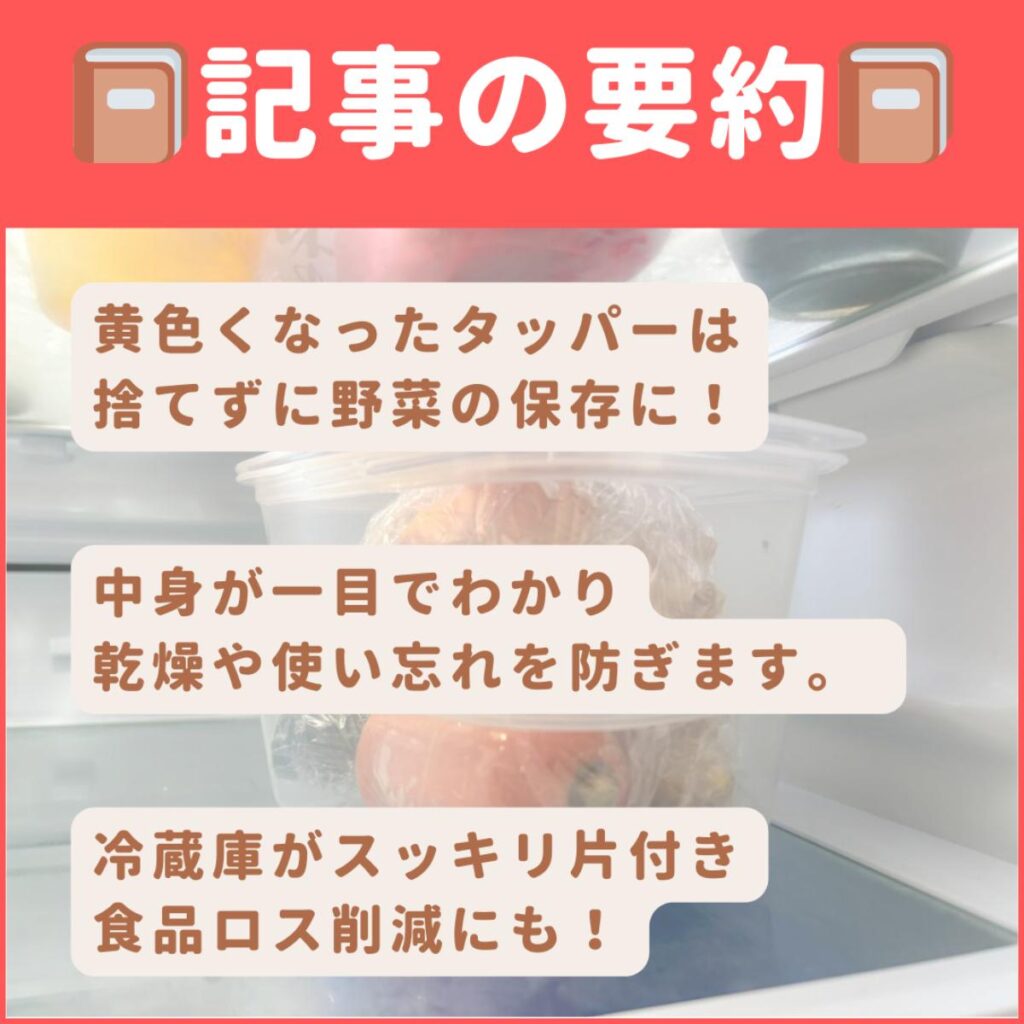 さらに、タッパーに入れることで野菜の乾燥も防ぎやすくなるというメリットも。