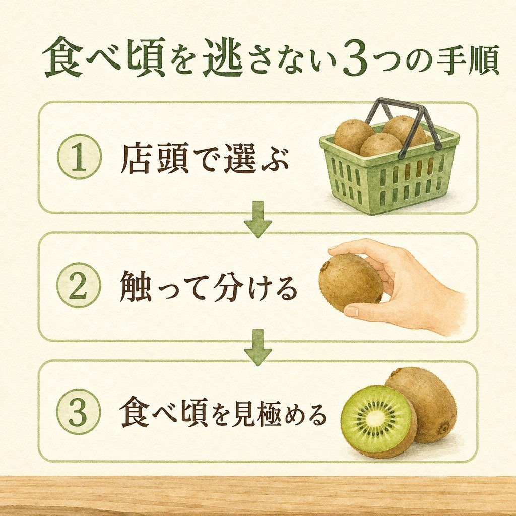 おいしさは、買う段階からすでに始まっています。店頭でキウイを選ぶときは、次の3点を意識してみてください。