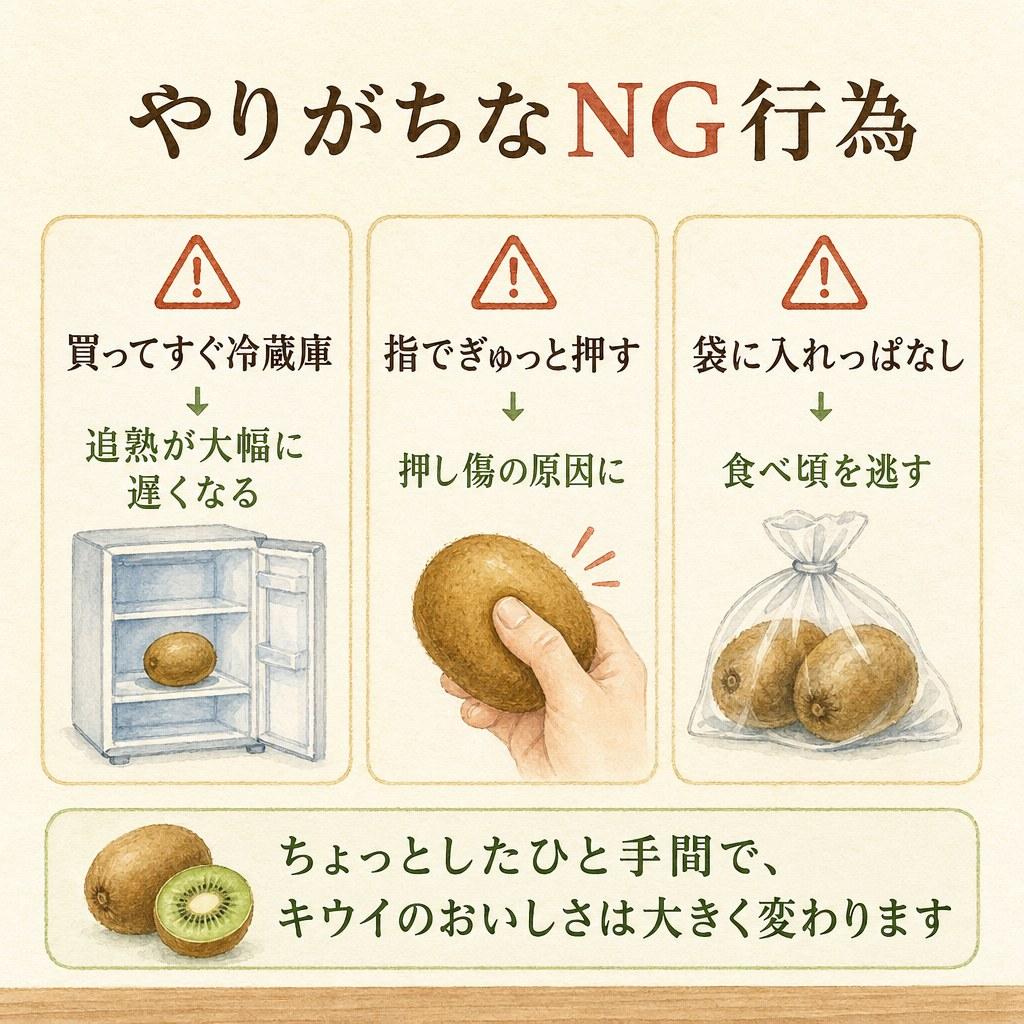 スーパーでキウイを買って帰ったあと、「食べごろがわからない」「切ってみたら硬かった」「気がついたら柔らかくなりすぎていた」と感じたことはありませんか。