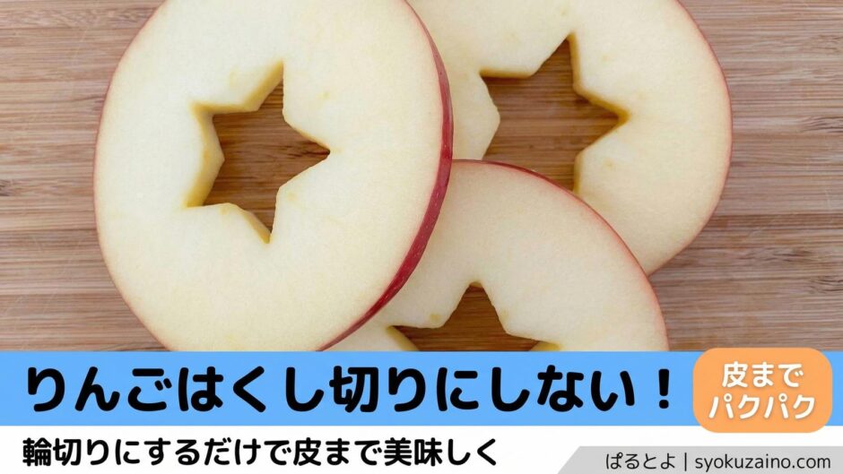 りんごをくし切りにするのをやめて、輪切りに変えるだけで、皮まで美味しく食べられるようになります。