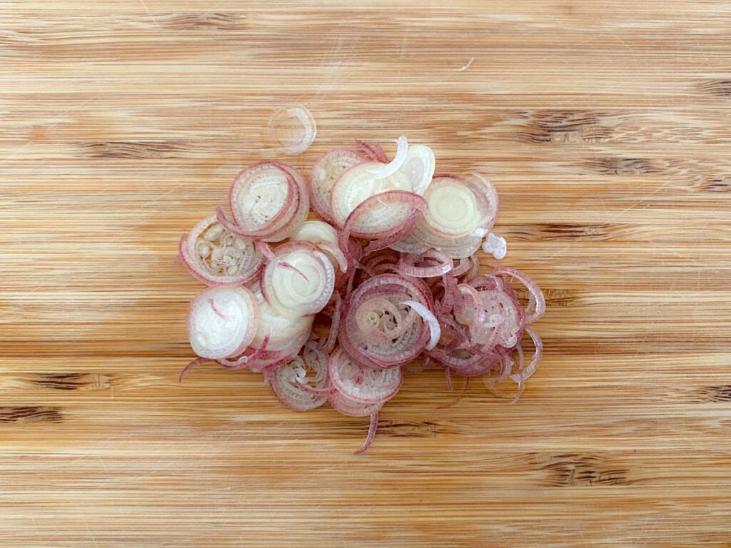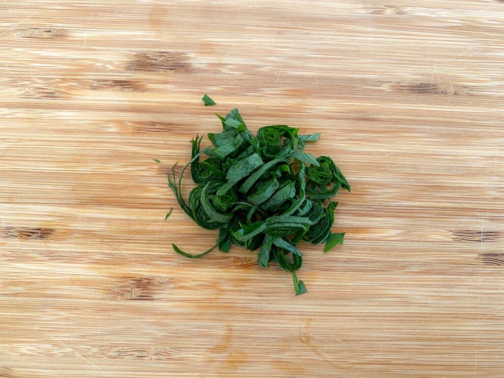 3) 大葉は細切りに、みょうがは輪切りにします。