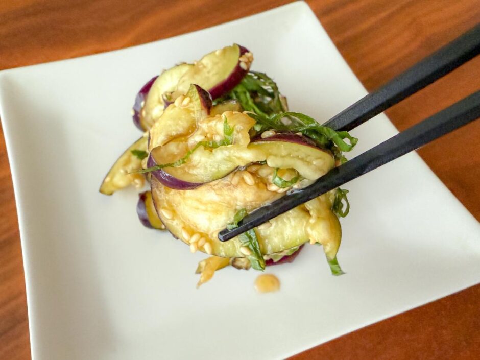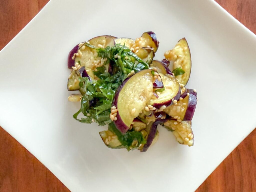 そんなときにおすすめなのが、火を使わずに作れるなすと大葉の甘酢和えです。