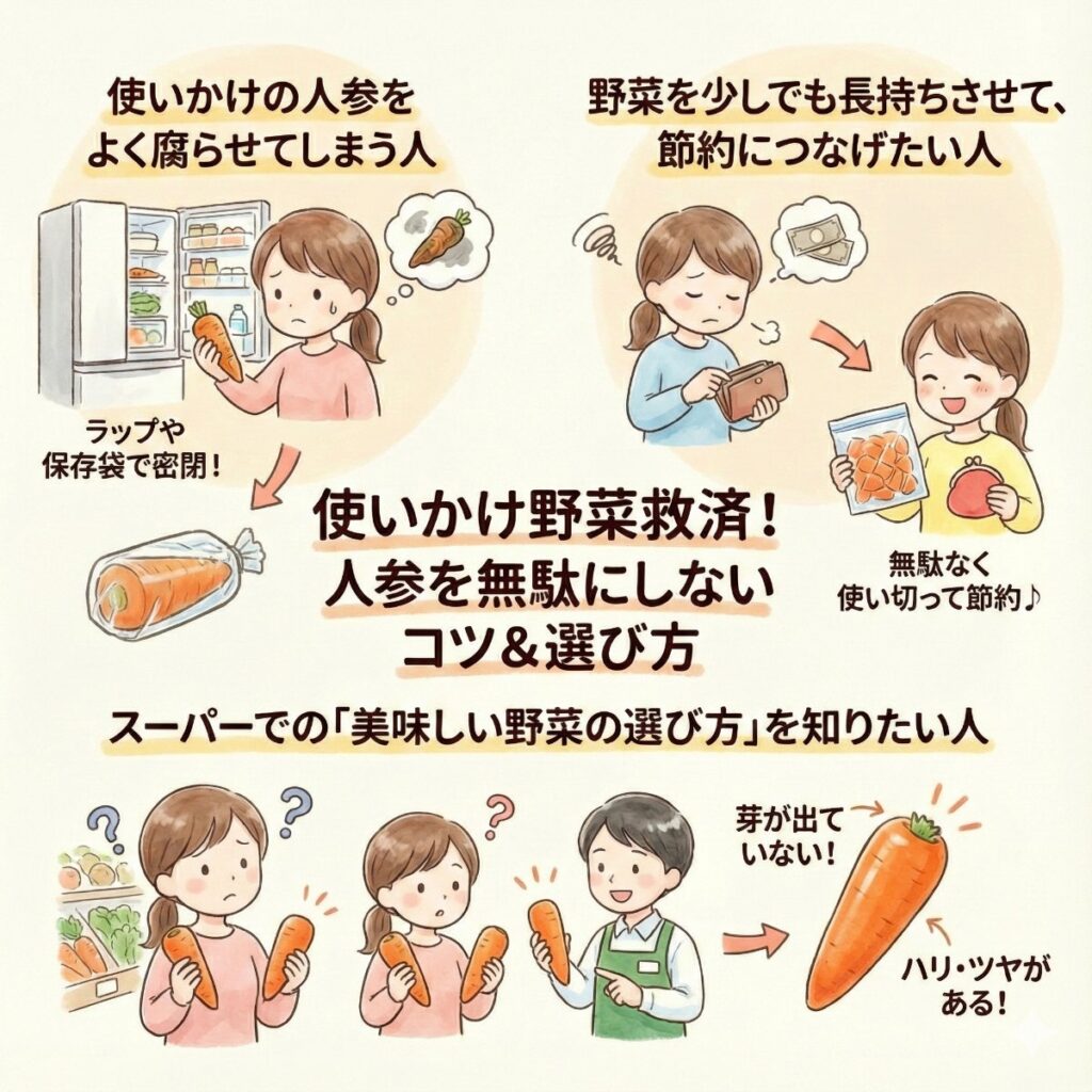 - 使いかけの人参をよく冷蔵庫で腐らせてしまう人