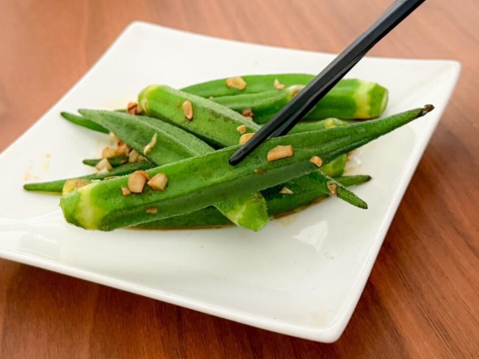 にんにくの香ばしい香りとしょうゆの風味が、オクラのねっとりとした食感に絶妙にマッチしています。