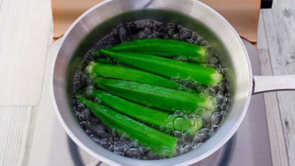 茹ですぎるとオクラ特有のシャキッとした歯ざわりが弱くなるため、1分ほどでさっと引き上げてください。