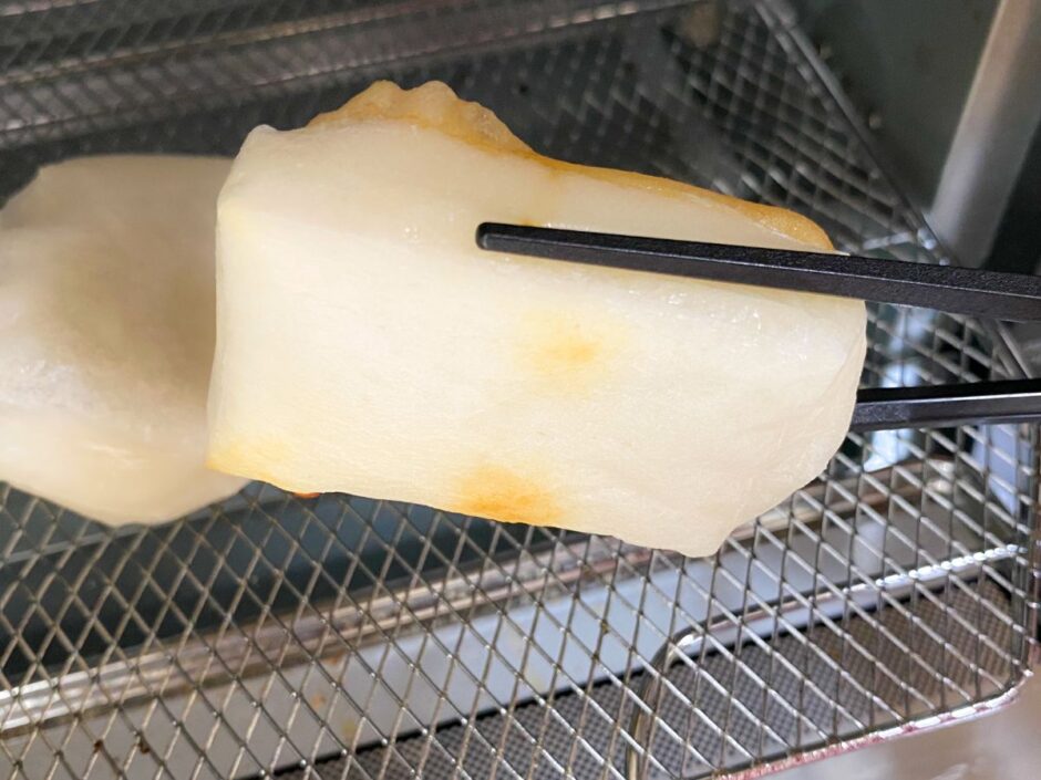 お餅の「切り込み(スリット)」が入っている面を上にして網に置きます。