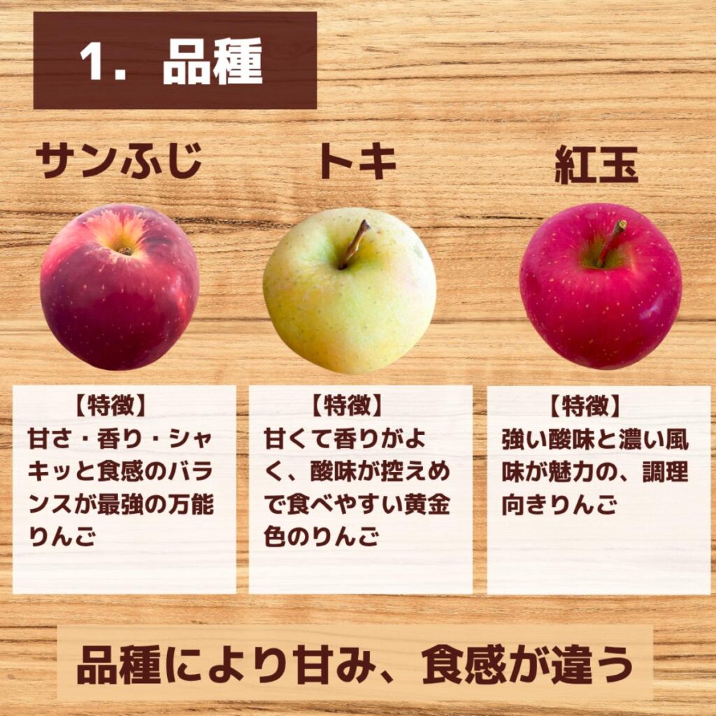 りんごは品種ごとに甘さや酸味が大きく異なります。