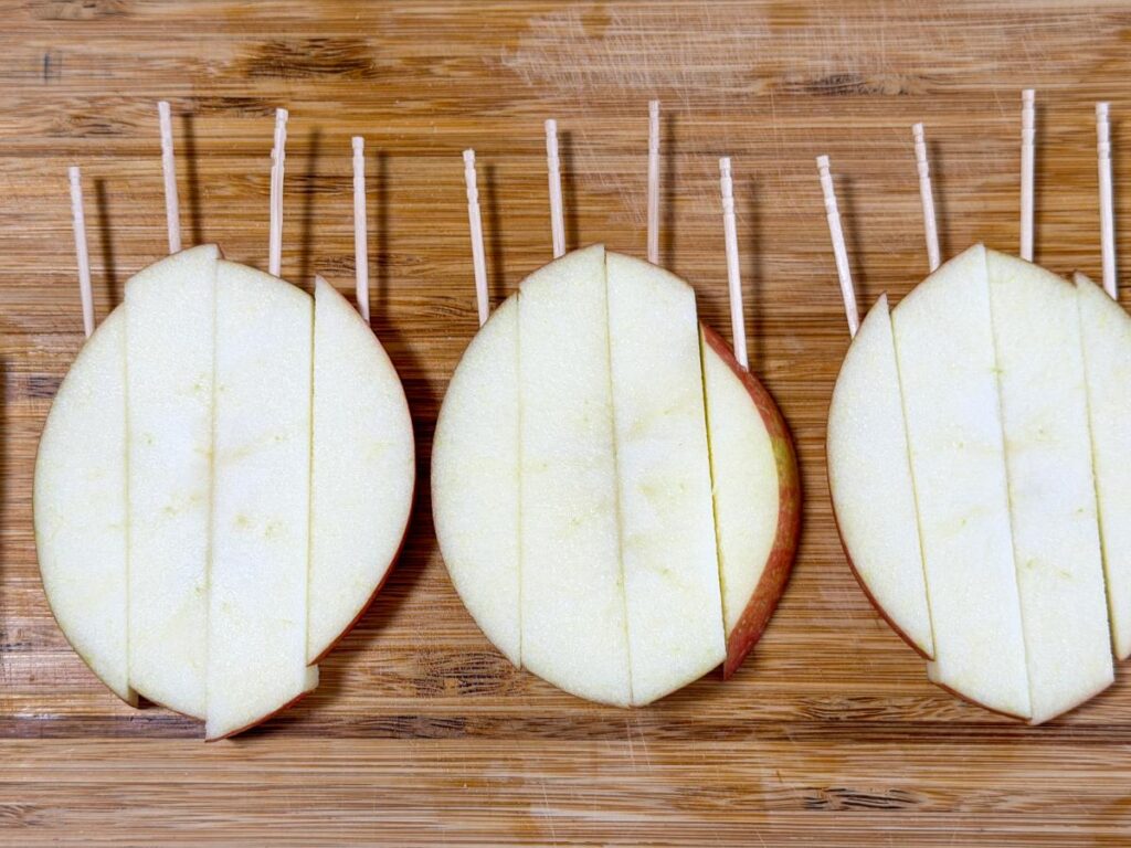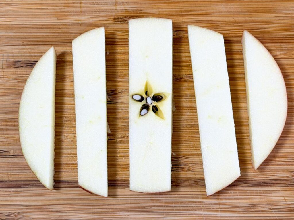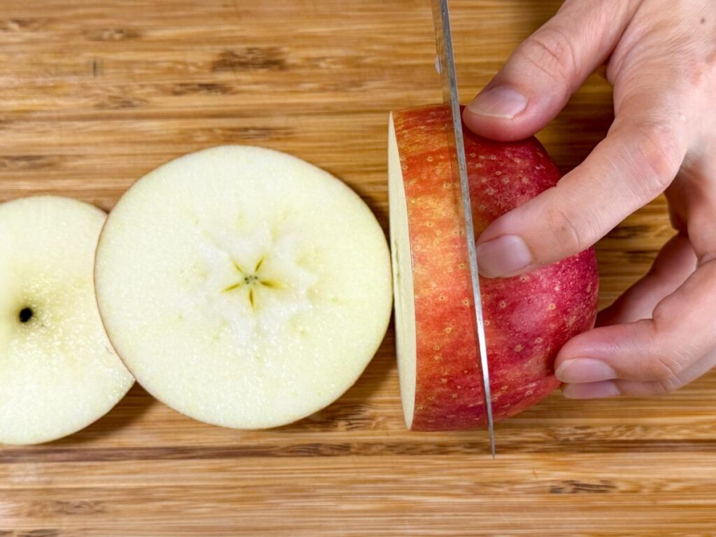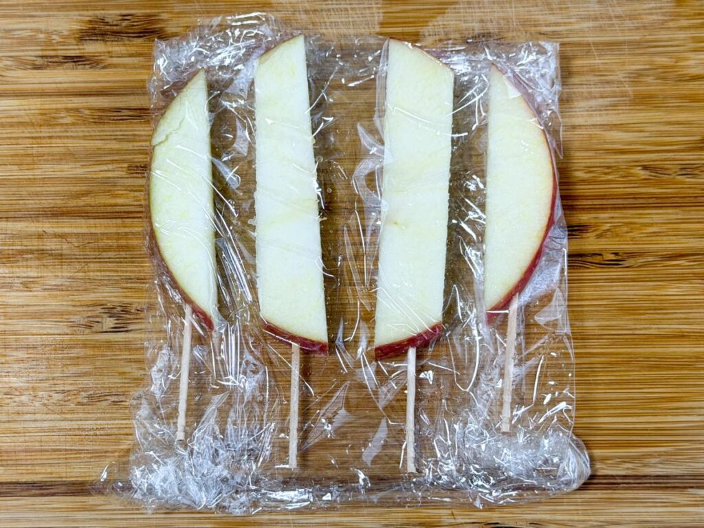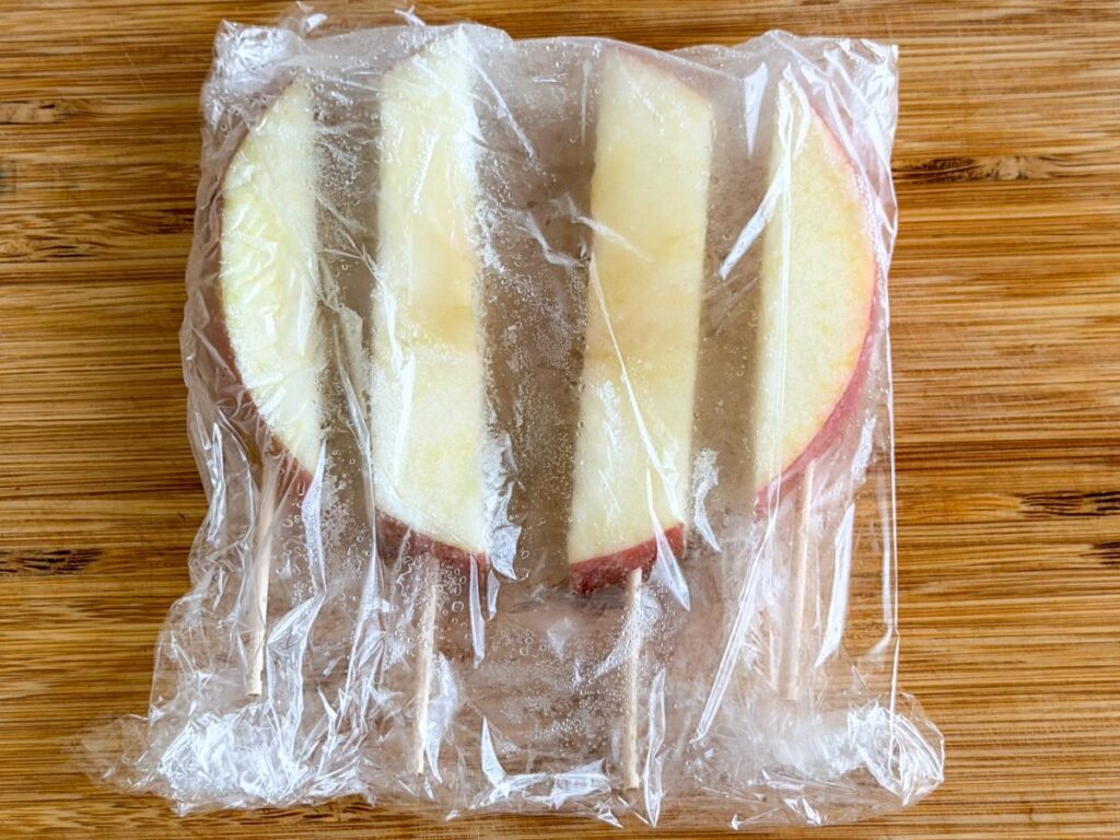 - りんごはスティック状に切るとムラなく冷凍できる。