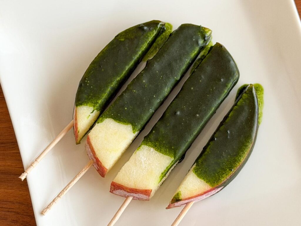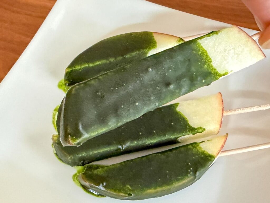 抹茶のほろ苦さとりんごの甘酸っぱさを楽しめる「抹茶チョコりんご」もおすすめです。