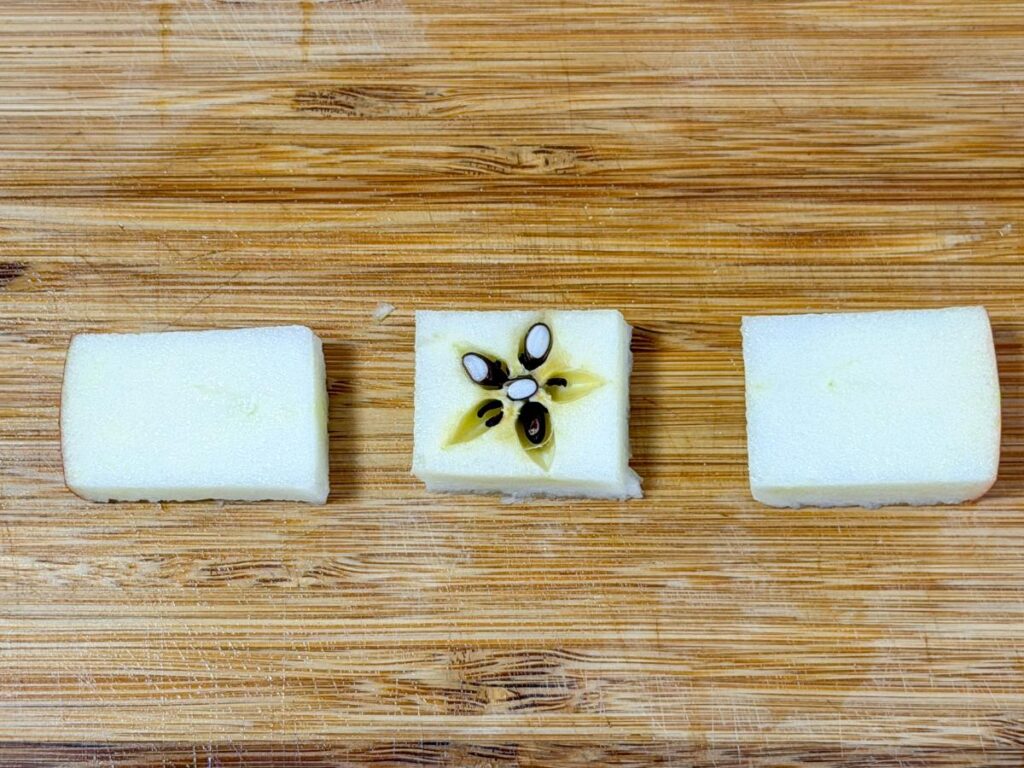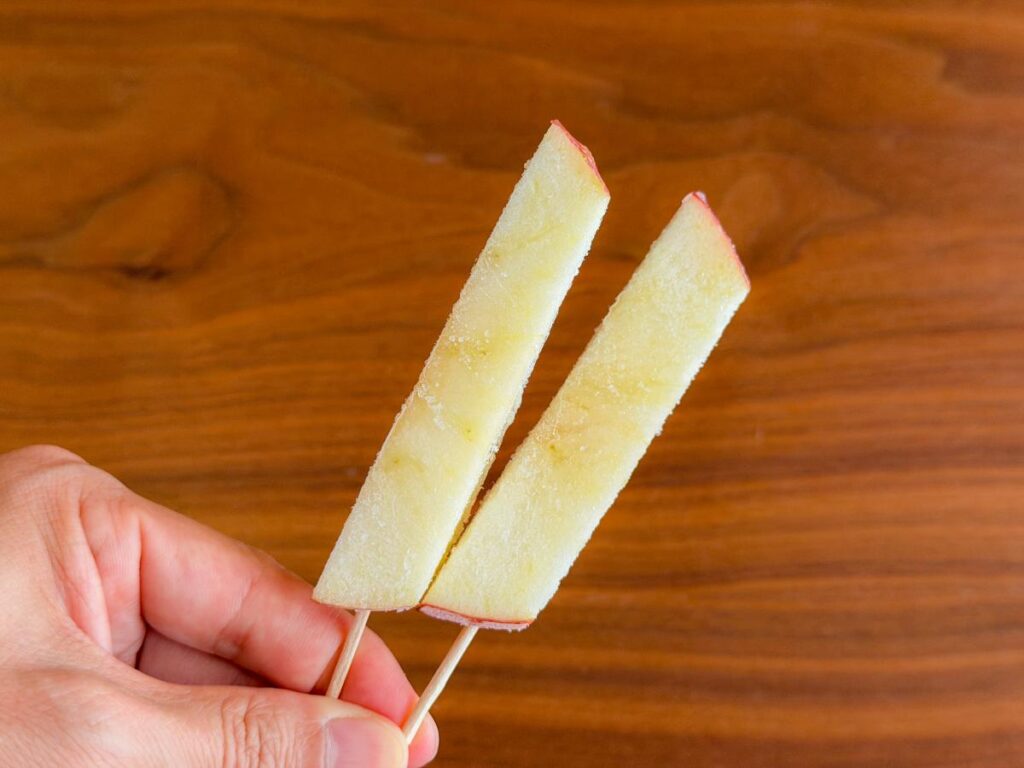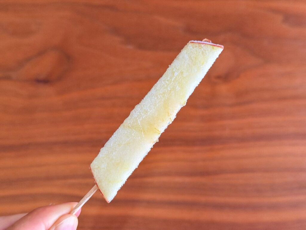 半解凍のりんごは、ひんやりとした口当たりが心地よく、自然な酸味と甘みのバランスを楽しめます。