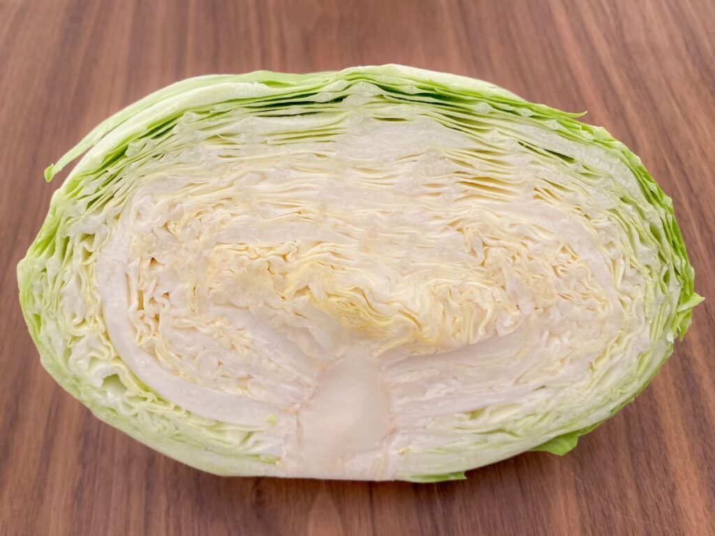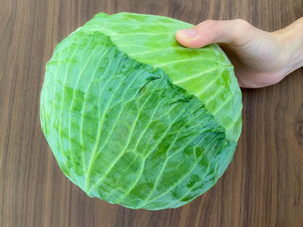 最後に、美味しい冬キャベツを選ぶコツを一つ。 ぜひ「持った時にずっしりと重いもの」を選んでください。葉の巻きが強く、中身が詰まっている証拠です。