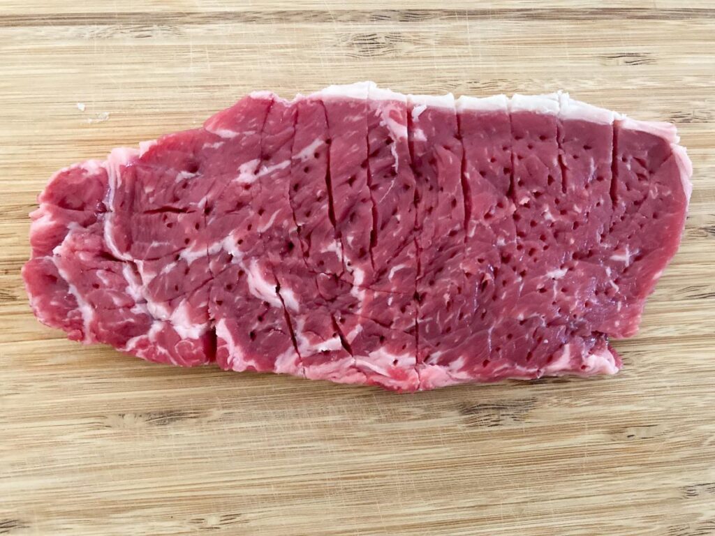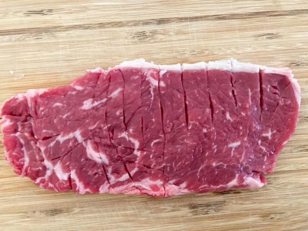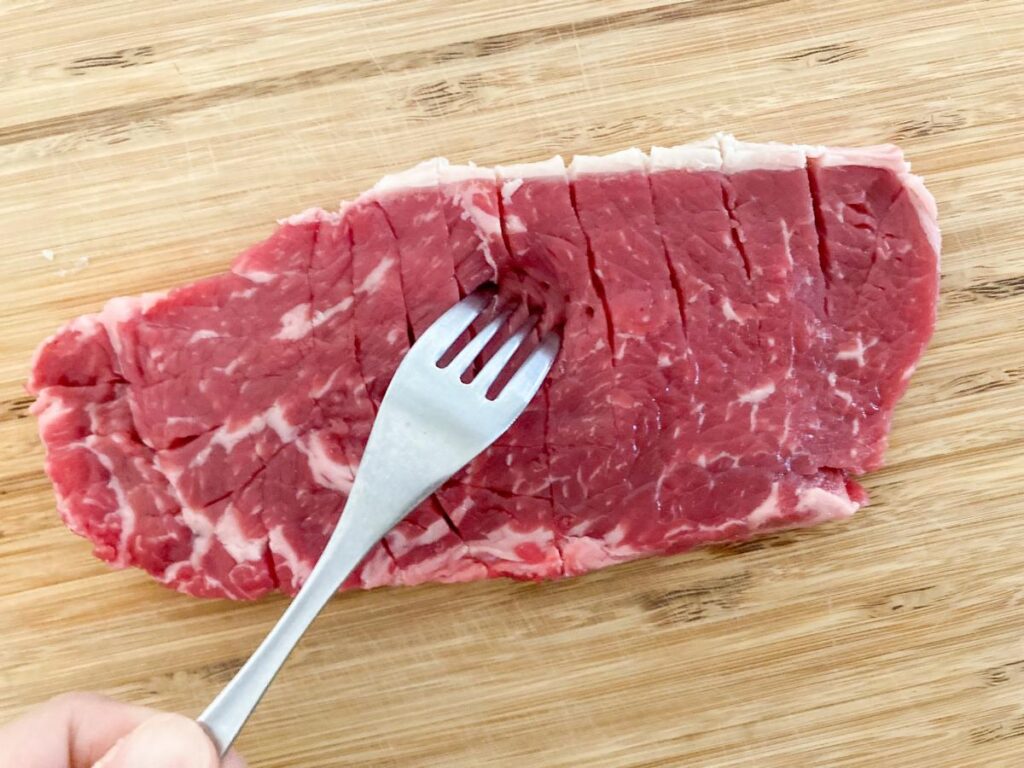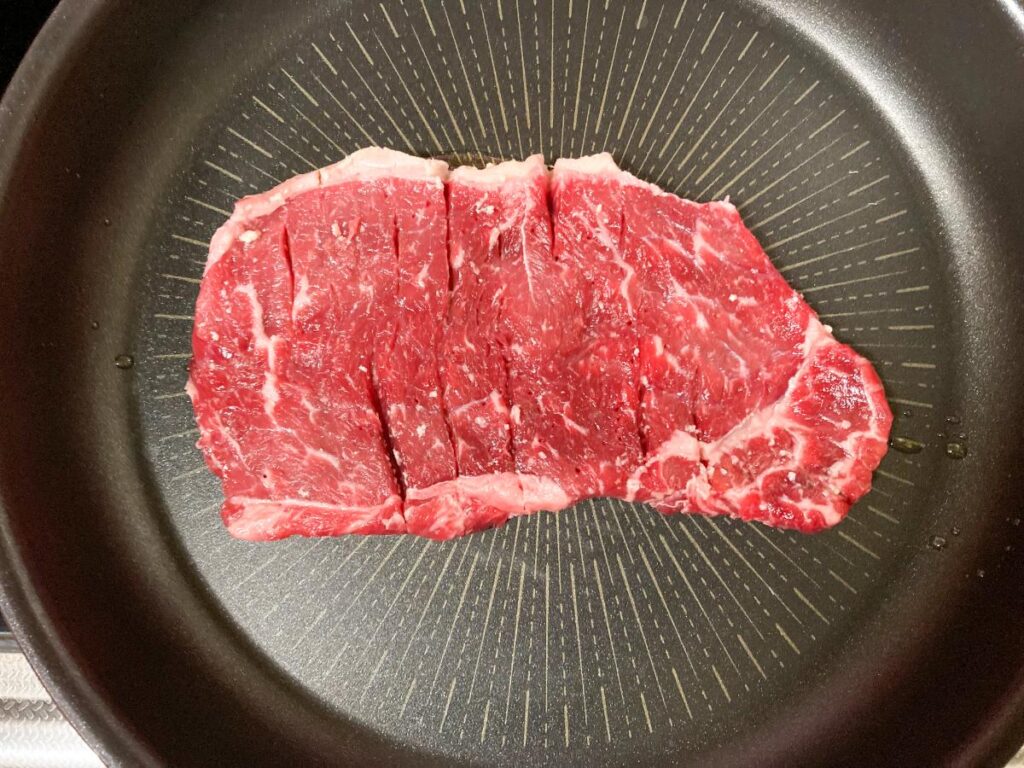 特にお手頃な価格帯の肉は筋がしっかりしていて、そのまま焼くと噛み切りにくくなりがちです。