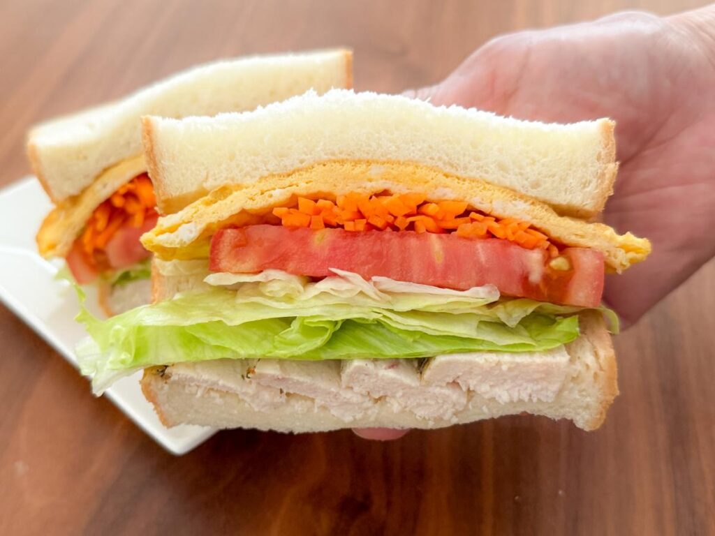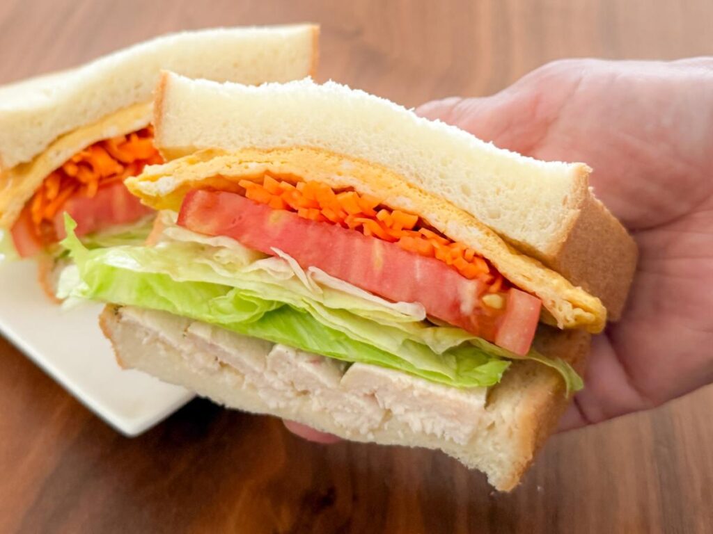 特に鶏ハムや卵焼きなどの具材を加えることで、たんぱく質がしっかり摂れる満足度の高いサンドイッチになります。