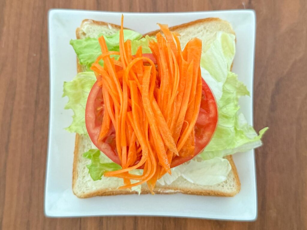 - キャロットラペは水気を切ってから挟むとパンがべちゃつきません。