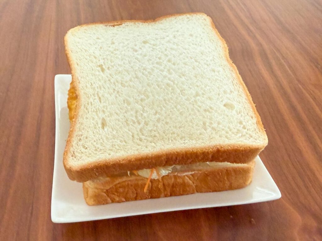 バターのコクと鶏ハムのやさしい塩味に、卵焼きのまろやかさが加わり、しっかりとした食べ応えがあります。