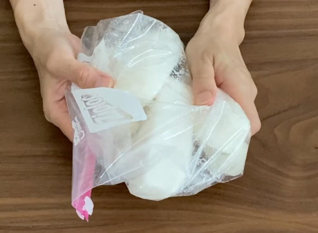 - 2)ジップロックに材料をすべて入れて揉み込む。