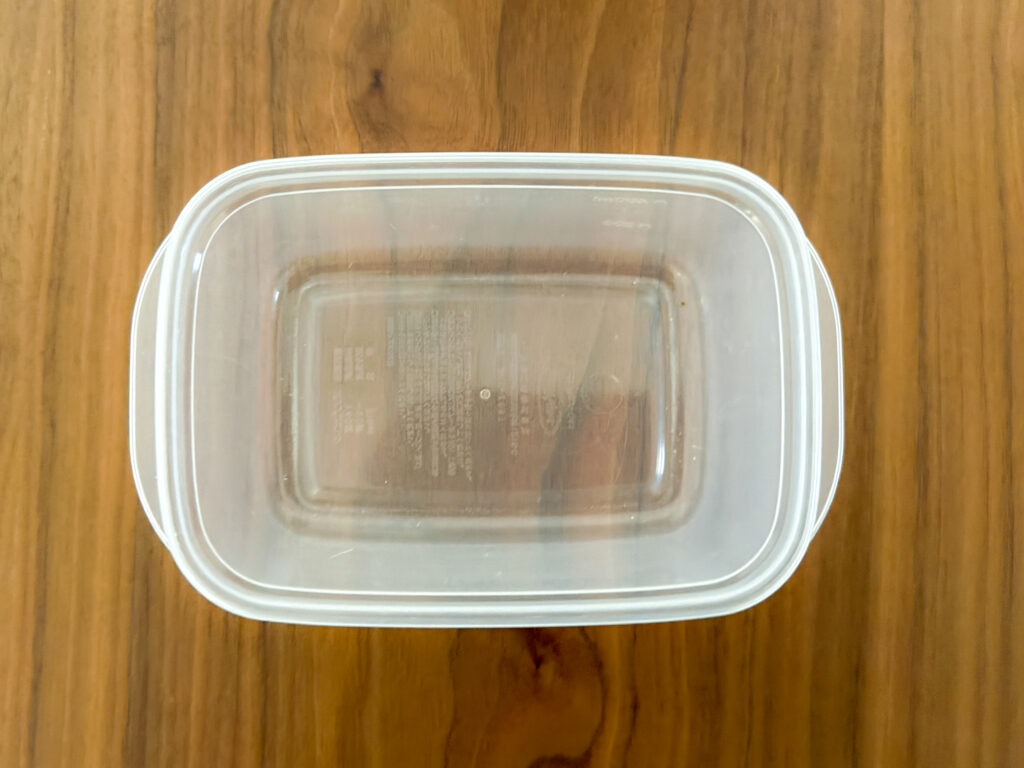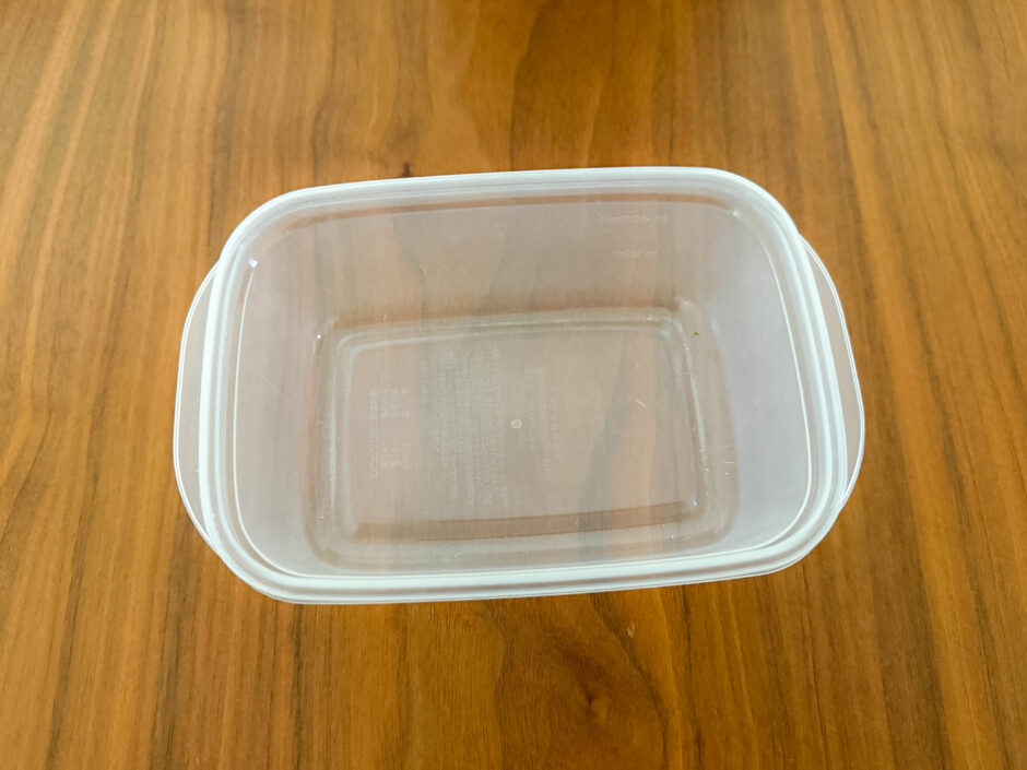1)使い古したタッパーを食器用洗剤でしっかり洗い、よく乾かします。