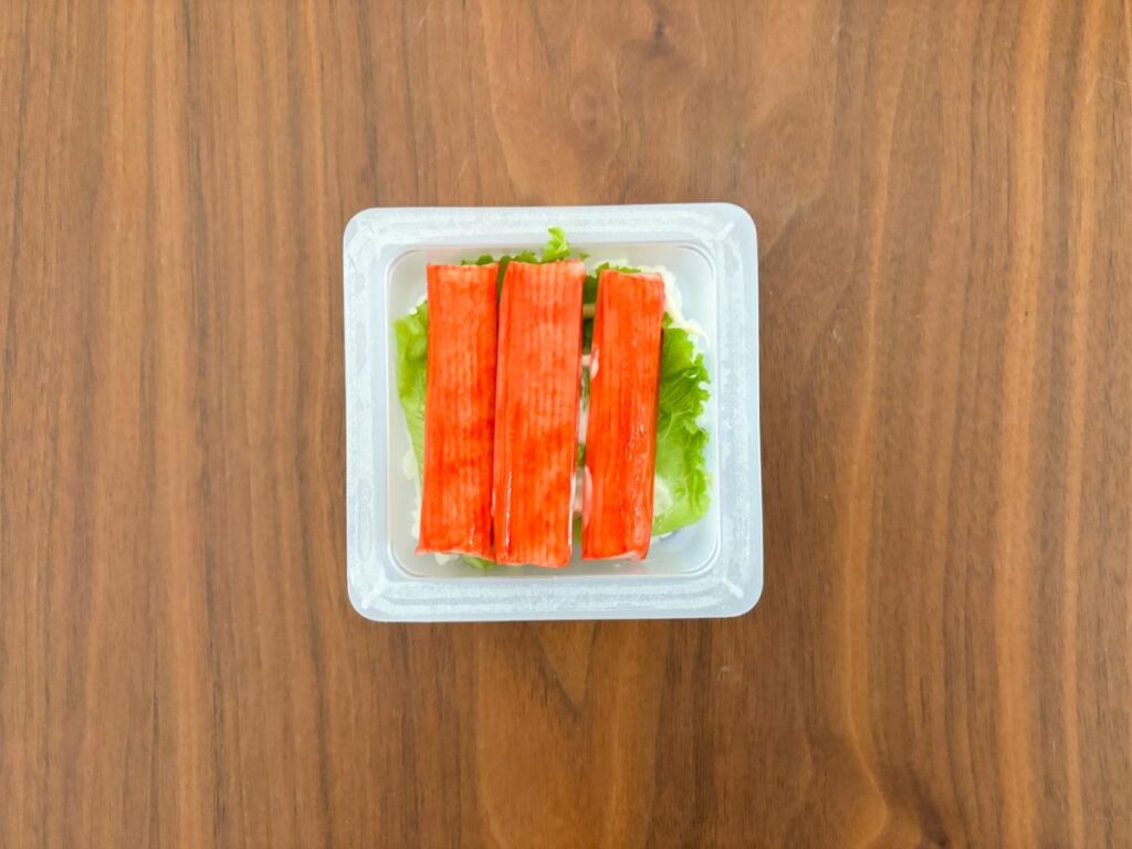 カニカマ以外にも、目玉焼きやハム、ハンバーグなどお好みの具材で楽しめます。